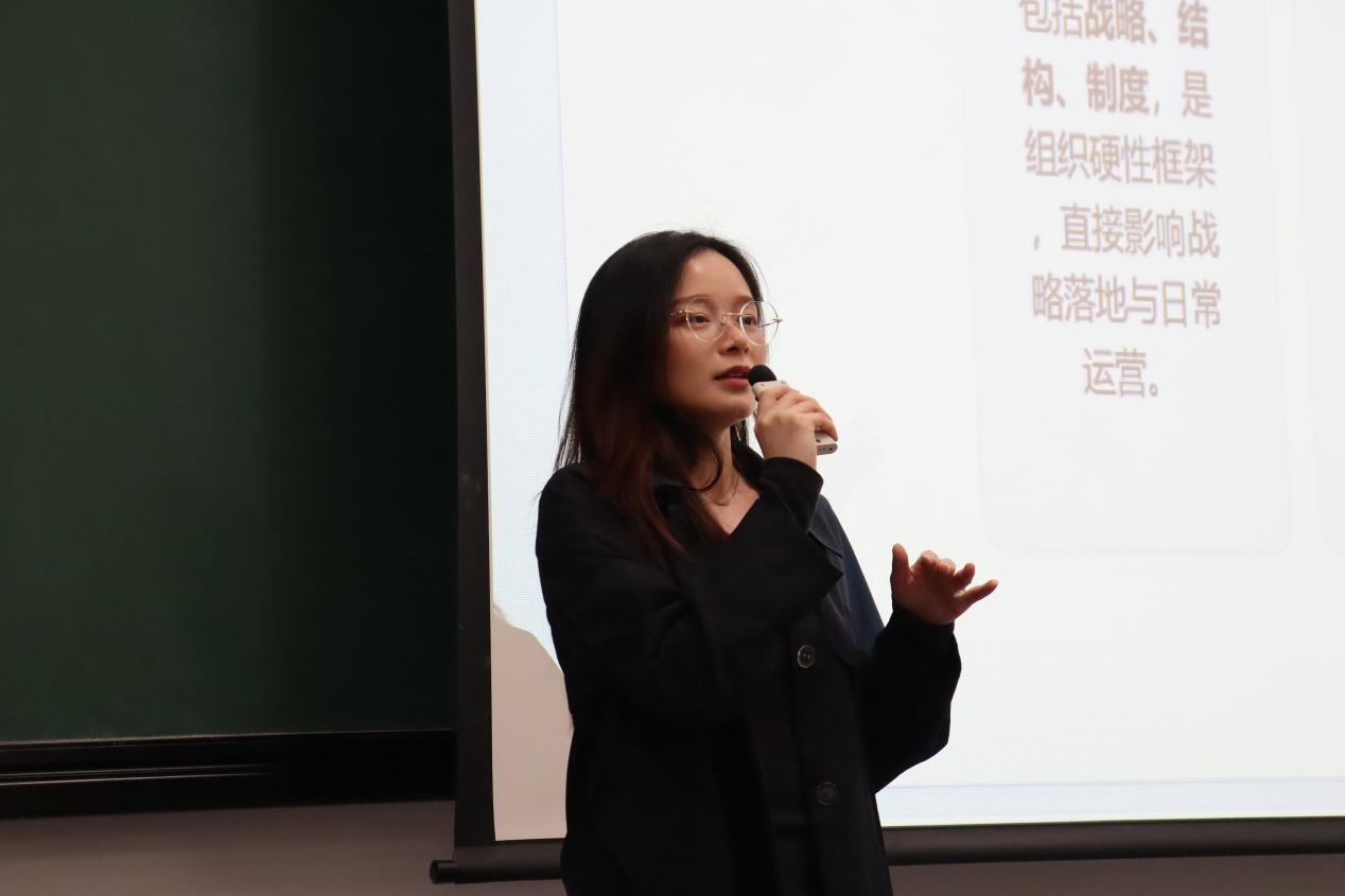 主讲人黄娟现任象屿股份HRBP、招聘团队负责人,曾任字节跳动成都公司HRBP,兼任我院就业导师。黄娟结合企业管理实践,围绕“什么是组织诊断”“为什么企业需要组织诊断”“如何理解组织运行中的核心问题”等内容展开系统讲解。她结合企业管理实际案例指出,在企业发展过程中,协作不畅、流程低效、执行偏差等现象,往往并非单一环节的问题,而是与组织体系运行状态密切相关。她表示,组织不仅是部门与岗位的集合,更是由人员、结构、流程、文化等多种要素构成的有机整体,只有实现各要素之间的高效协同,才能更好支撑战略落地与组织发展。