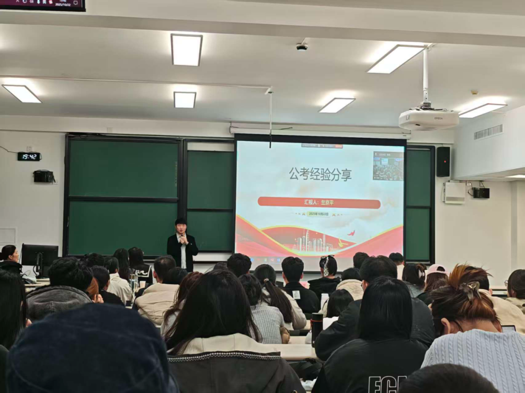 最后,他鼓励学弟学妹:“谋定后动、保持乐观,就业与考公多线并进。”现场掌声不断。