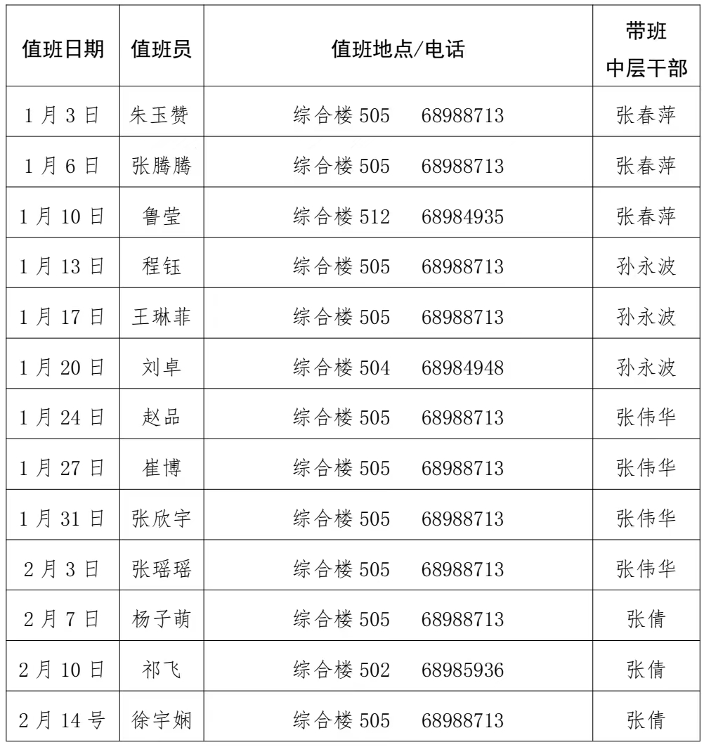 日本A片 2023年寒假值班安排表