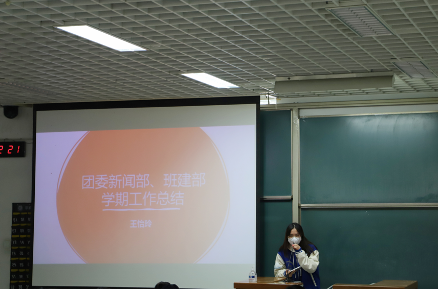 总结会上,学院团委副书记赵方洲、王怡玲、李宇涵分别介绍学院团委组织部、团建部、新闻部、班建部、宣传部、社团部等建设情况,总结了本学期学社衔接、素质拓展、团校、征兵宣传、新闻宣传等工作开展情况;学生会执行主席王明溪、主席团成员李千晴、吕天逸分别介绍了办公室、体育部、生活部、心资部、学术部、文艺部、舞团等部门的招新和发展情况,总结了本学期新生运动会、129合唱及表彰、模拟人生、新生篮球足球赛、辩论赛等各项工作取得成绩和有待改进的方面;青志协会会长陈沐渟介绍了青志协、外联部的工作情况,对本学期开展的有关志愿服务等工作进行了总结。