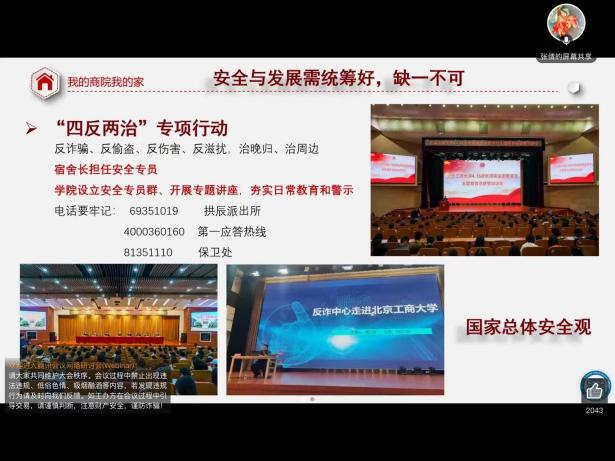 专题教育会上,张倩书记从“我的商院我的家”“底线教育”“须从规矩出方圆”“初心与使命”“成长与成才”五个方面进行介绍讲解。她着重向新生介绍了日本A片 及学院的历史渊源、发展建设情况、人才培养情况等,强调了提高安全防范意识、重视纪律规矩的重要性,通过具体案例说明了诈骗的骗术及危害,警醒同学们注意识别诈骗手段,增强反诈意识,做好安全防护。同时,她对考试纪律、校园规范、学风校风等一系列问题作出强调,要求同学们“强意识、守底线”,做好新时代新青年。在入党启蒙方面,她详细介绍了中国共产党的崇高使命,通过讲述抗疫和抗洪时期“火线入党”的事例让同学们感受到初心和使命,引导新生不断端正入党动机,积极向党组织靠拢。