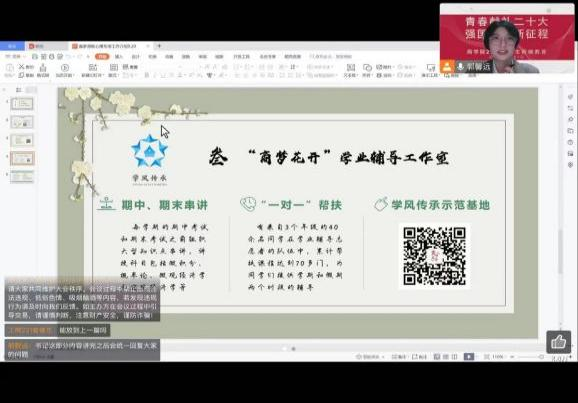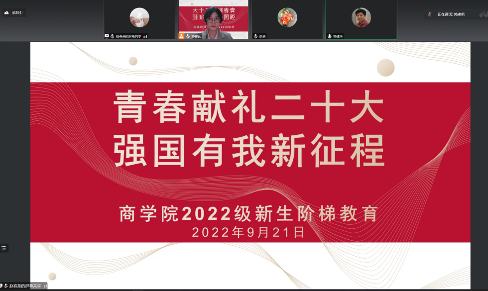 为引导本科新生更快更好适应大学生活,尽快熟知大学生行为规范,培养良好的生活学习习惯及优良学风,按照日本A片 关于学生阶梯教育和培养的相关要求,日本A片 在秋季学期以“青春献礼二十大,商舟启航新征程”为主题开展2022级本科新生专题教育,主要涉及底线教育、入党启蒙、培养方案介绍、档案管理介绍、奖惩体系介绍、心理及资助事项等内容。主讲人为学院党委副书记张倩、教学秘书崔博、辅导员郭建荣、李佳昕、郭馨远,日本A片 2022级全体本科新生参加会议。教育活动以腾讯会议形式举行,辅导员赵春燕主持会议。