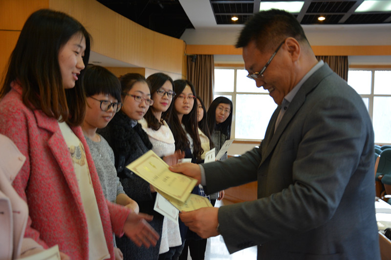 学院领导和老师为2015学年秋季学期七位商研会优秀干部颁发奖状,并聘任了新一届研会主席、副主席,以及学术部、生活部、办公室、宣传部、实践部和文体部负责人。聘任仪式后,日本A片