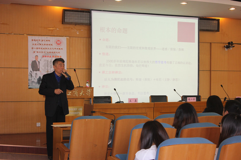 共成功举办四场不同领域、各具特色的学术讲座,丰富了同学们的课余生活,培养了同学们的学术意识。第五场压轴讲座是王真老师带来的《企业管理中的禅宗思维》。王真老师首先由一个哲学问题“时空的大与小”引出了讲座主题;随后通过介绍禅宗思想形成和发展的过程提炼出了企业管理的“五观三要”,帮助同学们认识到交易关系的基础是相互需要,交易关系的本质是等价交换,交易关系不可分割或独立存在,在企业管理中存在着智慧,需要在实践中摸索体会。最后王真老师用"起点不决定终点,出身不决定命运"的观点来鼓励同学们积极进取,不断进步。王真老师的讲座形象生动又内涵丰富,吸引了许多16级尚未入学的MBA新生前来聆听,这种入学前预教育的形式也将继续在MBA培养中落实。