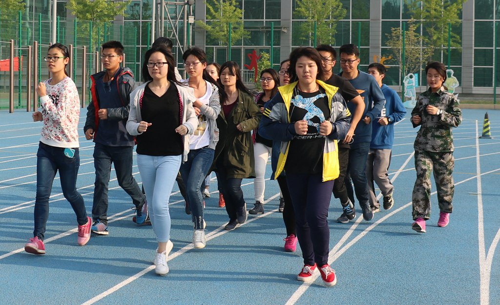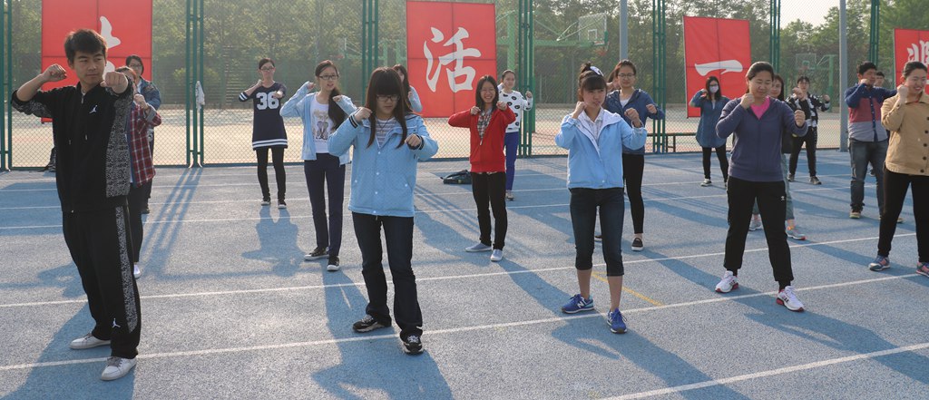 晨练活动开始,学生军人教官组织各班同学通过晨跑进行热身,随后向商院学子传授女子防身术。同学们认真学习防身知识以提高自己面对紧急情况时的应对能力。