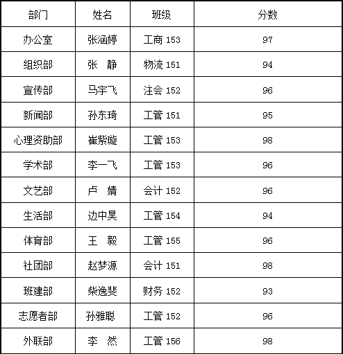 2015~2016学年日本A片 5月份“新星干事”公示表