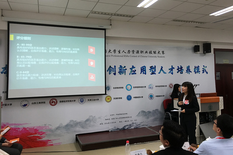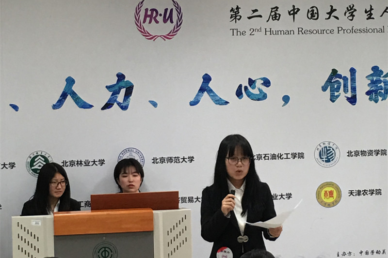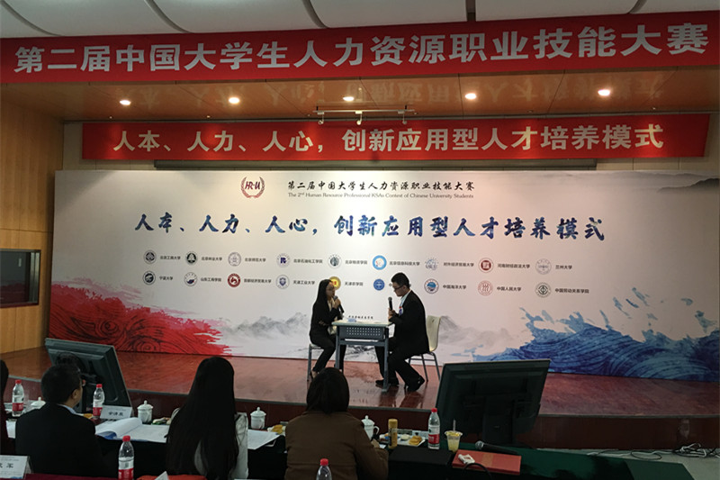 11月26日,以“人本、人力、人心,创新应用型人才培养模式”为主题的第二届中国大学生人力资源技能大赛在中国劳动关系学院胜利召开。有来自全国各地共十八所高等院校的人力资源专业大学生参加了本次大赛。环球网、央广网、人民网、新华网等对本次大赛进行全程网络直播。我院学子在何辉老师、王长斌老师、武晓宇老师的组织与指导下,参加了本次大赛全部四项比赛环节以及一站到底答题、英文演讲等团队加分环节。