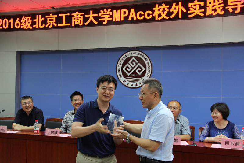 谢志华副校长在致辞中强调了培养应用型人才以及专业性学位培养的重要性,高度肯定了校外实践导师对MPAcc学生的学习和工作各方面的重要作用,同时表达了对诸位MPAcc校外实践导师的由衷感谢。他指出:“一个人做一件好事不难,难的是做好多年的好事还想着做好事。”“育人是世界上很高贵的事情,校外实践导师对我们学生的指导基本上是无偿的劳动,这体现了他们的责任担当。” 谢志华副校长希望MPAcc学生能够带着问题向校外导师请教,强调了问题导向研究方式的重要性;他表示,是否能解决现实生活中的实践的问题是考验研究生培养是否成功的很重要的一个标准,对2016级MPAcc学生提出了具体的要求。
