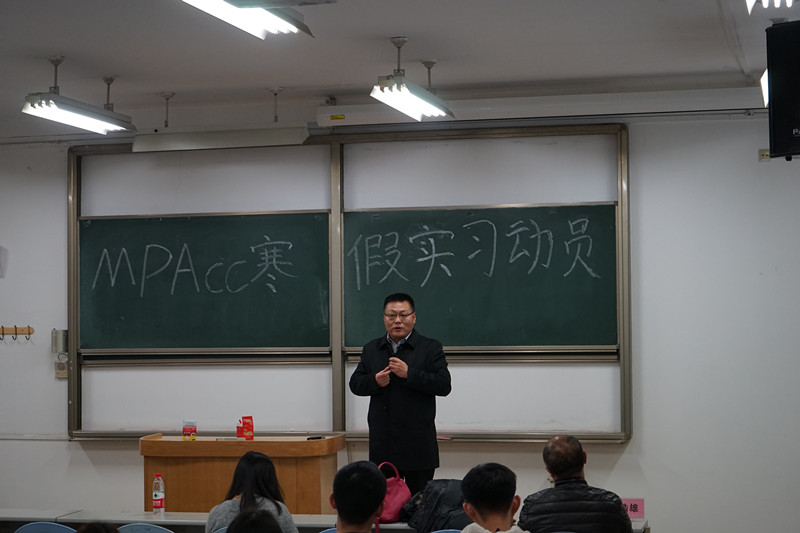MPAcc中心在教三楼举办了首届寒假实习动员大会。会议由MPAcc中心执行主任刘婷老师主持,学院领导杨浩雄副院长、樊江涛副书记、MPAcc中心执行主任张路老师以及MPAcc中心全体同学参加了此次动员会。