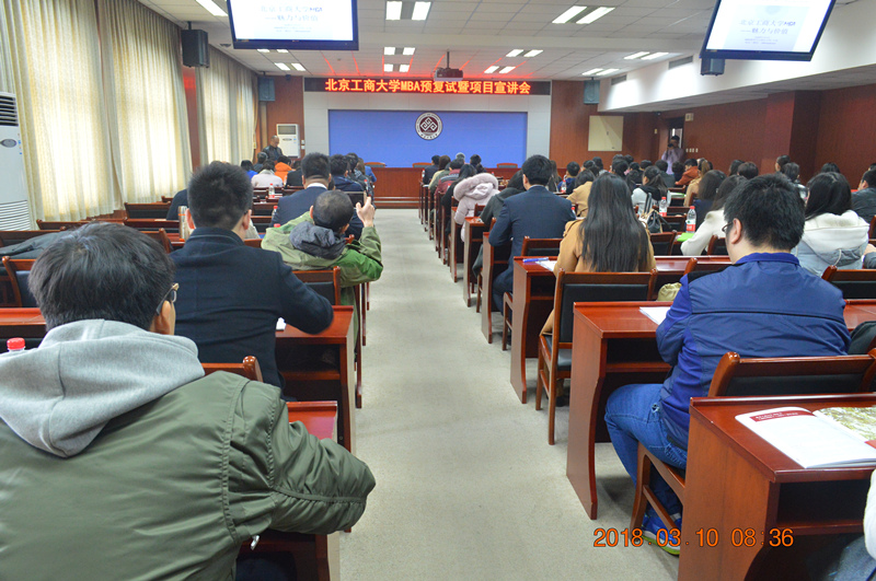 此次参加预复试的考生近百人,宣讲会现场座无虚席。MBA教育中心执行主任王真担任主持。