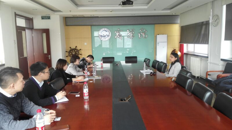 副院长何玉润、国际交流与合作处马雪娇老师、市场营销系副主任王勇、工商管理系教师武晓宇、国际交流办公室执行主任蒯鹏州在综合楼501会议室亲切接见。