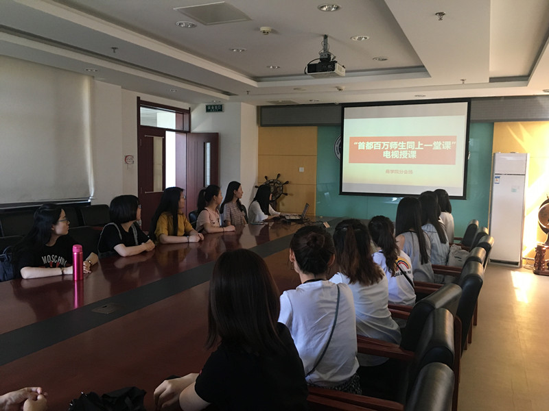 为深入学习宣传贯彻习近平总书记在北京大学师生座谈会和纪念马克思诞辰200周年大会上的重要讲话精神,深入理解习近平新时代中国特色社会主义思想,按照教育部统一安排和部署,推进“首都百万师生同上一堂课”活动深入开展,5月30日和5月31日,学院组织全体教师、研究生、本科生分别在二层西会议室、学院会议室和良乡教室观看中国教育电视台的电视直播。