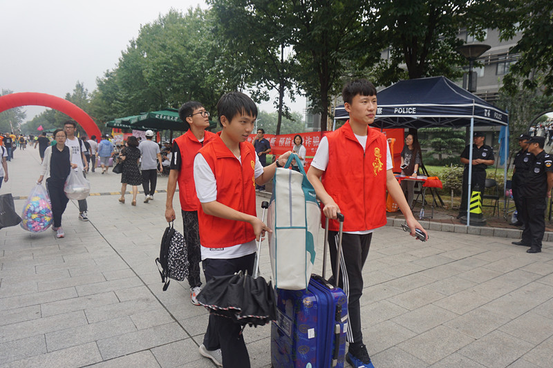 大家庭的新同学们表达着诚挚的欢迎和问候。萌新们在志愿者的指引下与报名登记、领取材料等,学院老师也同新生家长热情交流。党员爱心服务站的学生党员们于校园内外进行新生引导,他们帮助新生们搬运行李、领取物资,耐心指导新生们办理入学手续。在学院迎新工作人员的协作配合之下,迎新工作如火如荼、有条不紊的开展。
