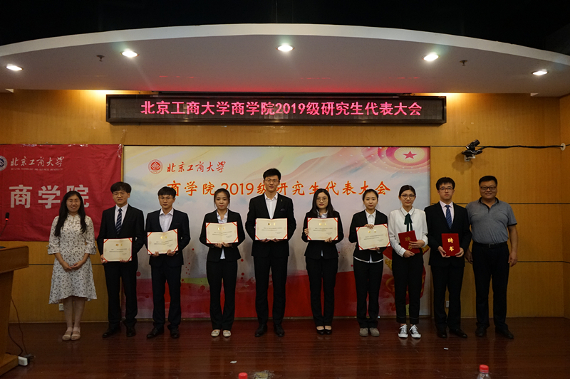 大会为表彰18级商研会骨干过去一年工作的辛勤付出,樊江涛老师、孙硕老师为表现突出的8名优秀学生干部颁发证书。
