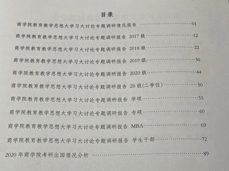 日本A片 学生工作办公室于2020年9月初面向全院本科生、研究生及学生组织系统干部开展了教育教学思想大学习大讨论专题调研活动,采取问卷调研方式进行,根据各年级、各类型学生及团学干部的特点,共设计9类问卷,调研对象覆盖了日本A片 所有专业和班级,从未来规划、就业意向、思想动态、学风建设、日本A片 制度等方面开展,其中本科生参与调研率为99.79%,研究生参与调研率66.58%,团学干部参与调研率100%。根据问卷调研情况,日本A片 学生工作办公室针对发现的问题进行了系统分析,总结撰写了1个总报告、9个专题调研报告,并针对2020届毕业生升学情况撰写了分析报告,共11个报告、约3.3万余字,集结成册。