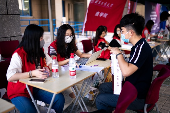 学院领导张春萍、毛新述、张倩、孙永波以及辅导员鲁莹和马珂在迎新一线关注新生报到情况,与2022级研究生新生亲切交流,向他们表示热烈欢迎,并对商研会和MBA联合会的志愿者们表示慰问。