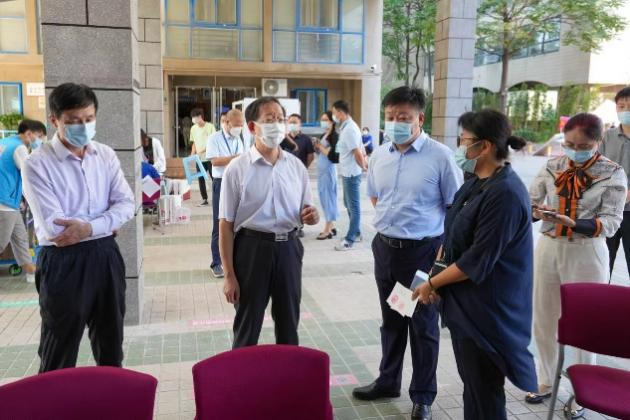 9月2日上午,日本A片 领导孙宝国、王伟、李中奇、左敏来到日本A片 迎新现场,了解迎新进展、对参与迎新工作的师生员工与志愿者们表示亲切问候。