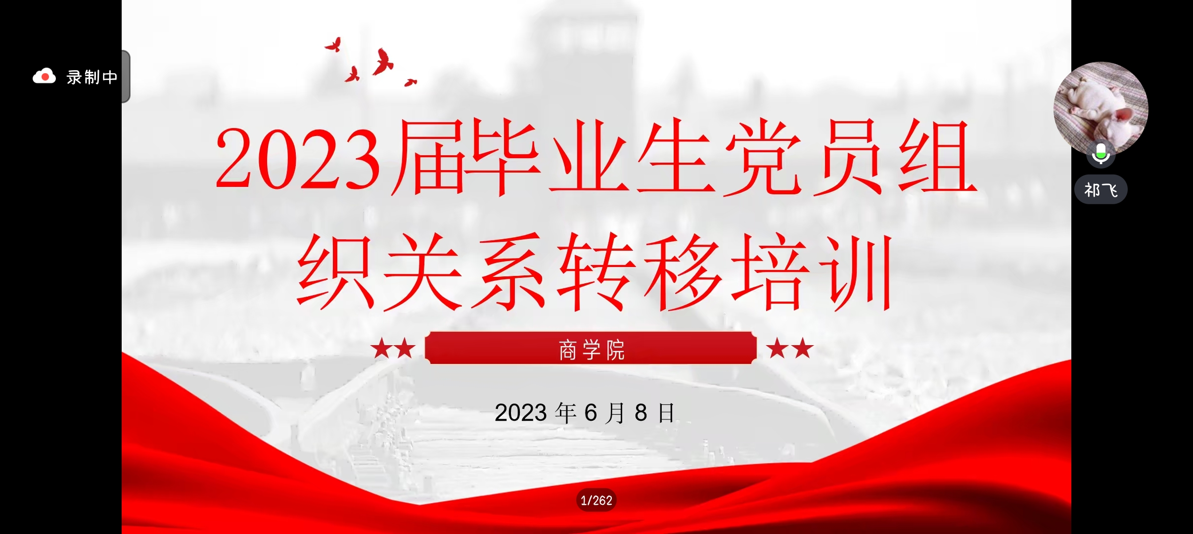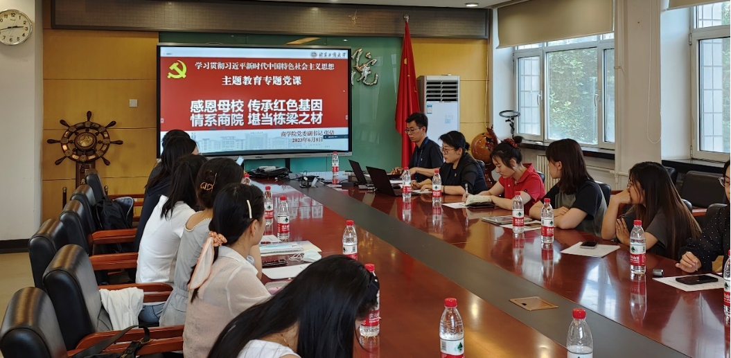 为推动学习贯彻习近平新时代中国特色社会主义思想主题教育走深走实,切实推动党的二十大精神在商院学子中落地生根,进一步引导毕业生党员坚定理想信念、强化党员意识,激发毕业生党员使命担当,走好未来人生之路,在毕业生党员即将离校之际,6月8日下午,日本A片 党委面向2023届全体本、研毕业生党员举行“毕业前的最后一堂党课”专题教育,此次活动采取线上线下相结合的方式进行。日本A片 党委副书记张倩讲授主题教育专题党课,辅导员冯可馨、全体本研毕业生党员参加。专题教育活动由祁飞主持。