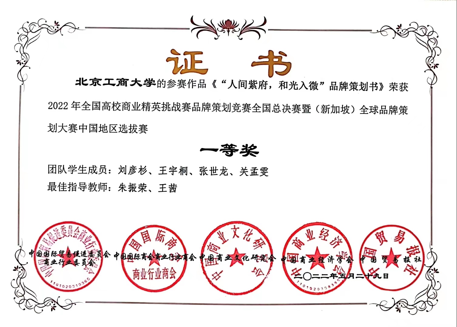2022年5月28、29日,由全球华人营销联盟(GCMF)、中国国际贸易促进委员会商业行业委员会、中国国际商会商业行业商会、中国商业文化研究会、中国商业经济学会和中国贸易报社共同主办,中国国际贸易促进委员会商业行业委员会承办的2022年全国高校商业精英挑战赛品牌策划竞赛全国总决赛暨(新加坡)全球品牌策划大赛中国地区选拔赛在线上成功举办。该竞赛为全国高校大学生一级学科竞赛,也是我校认定的A类学科竞赛。