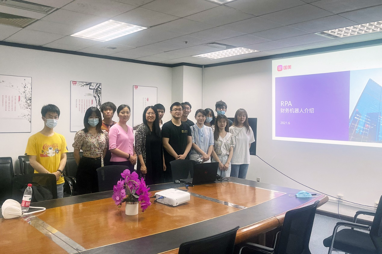 6月8日下午,我院自动化与人工智能商业应用研究中心主任孙玥璠、李梓老师、郑宇花老师带领部分研究生和本科生前往国美集团交流RPA财务机器人开发和应用。