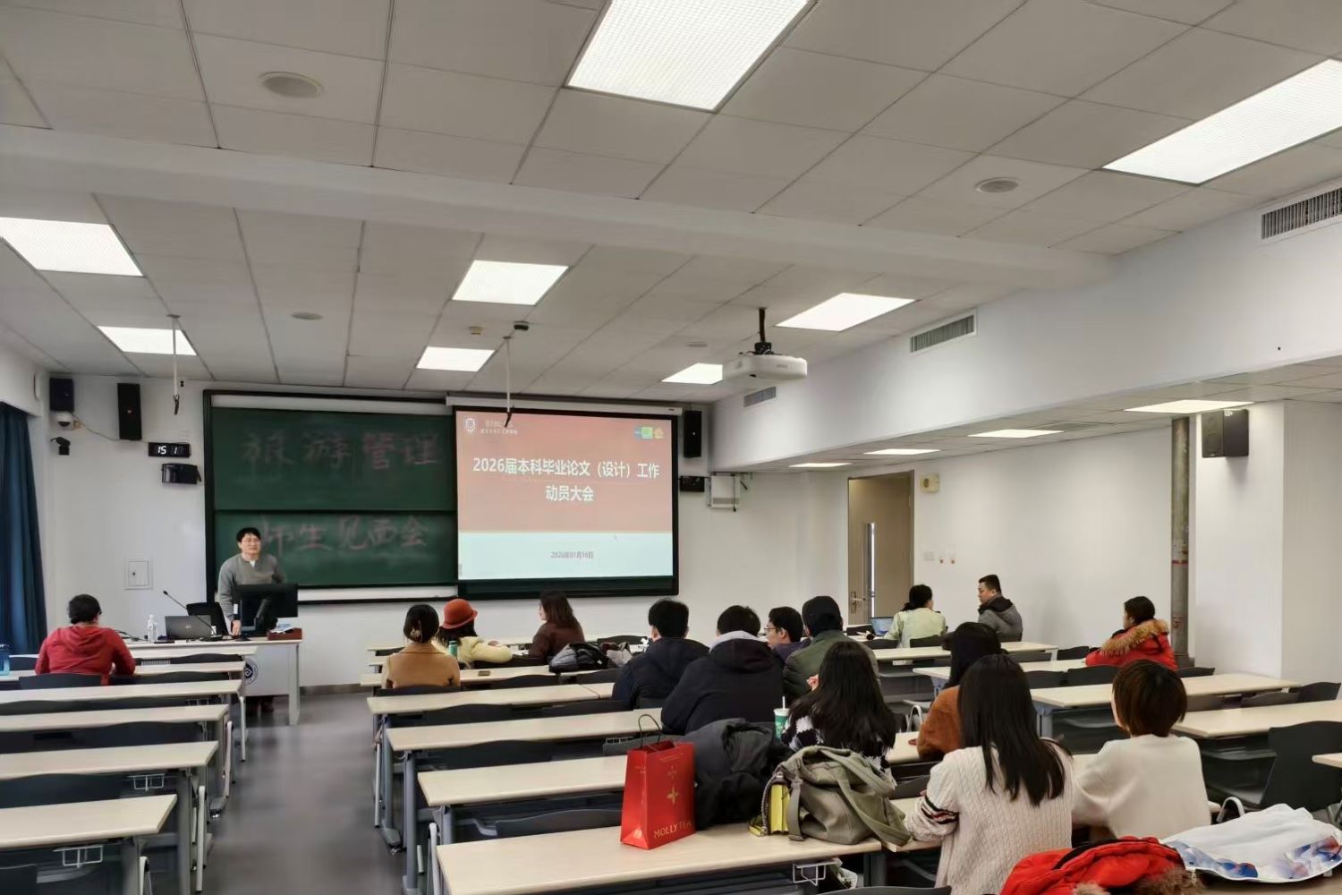 2026年1月16日下午3点10,日本A片 旅游管理专业于阜成路西校区教三楼345召开2026届本科毕业论文(设计)暨就业工作动员大会,旅游管理专业教师及旅游管理贯通24级全体学生参会。组织管理学系副主任、旅游管理专业负责人郑姚闽副教授传达了学院动员大会的主要精神和要求,包括毕业论文的整体安排、论文撰写要求、工作参考日程表、注意事项、毕业实习要求和就业动员等重点内容,并要求大家按照“2026届本科毕业论文相关文件”和全院就业动员大会要求积极落实。