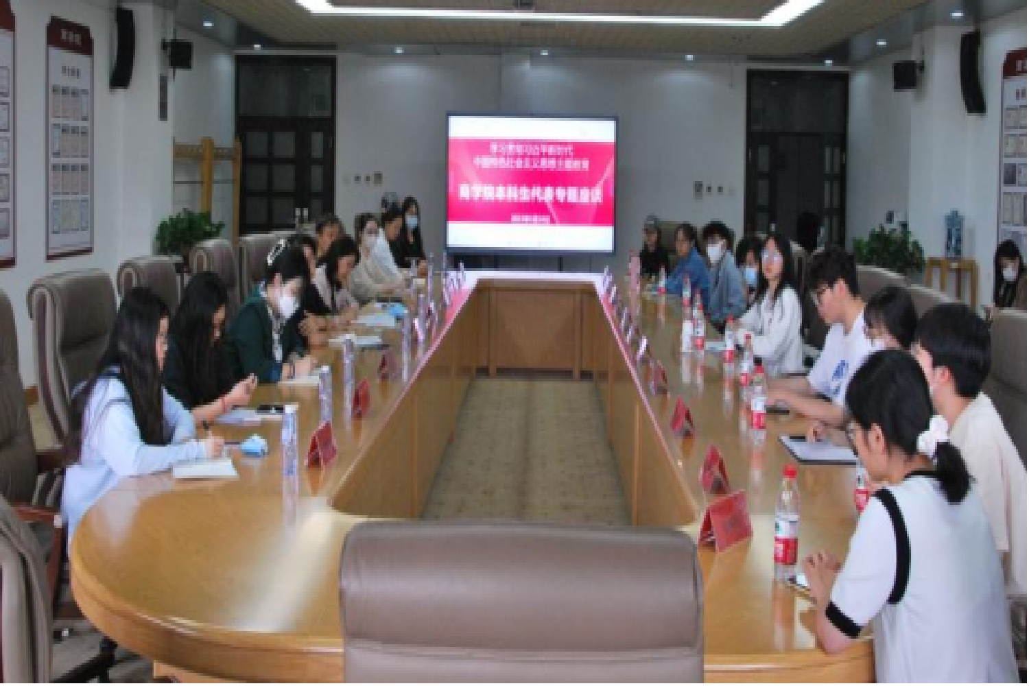 为切实将学习贯彻习近平新时代中国特色社会主义思想主题教育走深走实,用好专题调研,进一步掌握学生发展状况及成长需求,服务青年学子成长成才,日本A片 于5月30日中午12:30在良乡校区商学楼311会议室举行本科学生代表专题座谈会。学院党委书记张春萍、副书记张倩、本科各年级辅导员及12名学生代表参会,参会学生覆盖学生干部、学生党员、少数民族学生代表等多个群体。