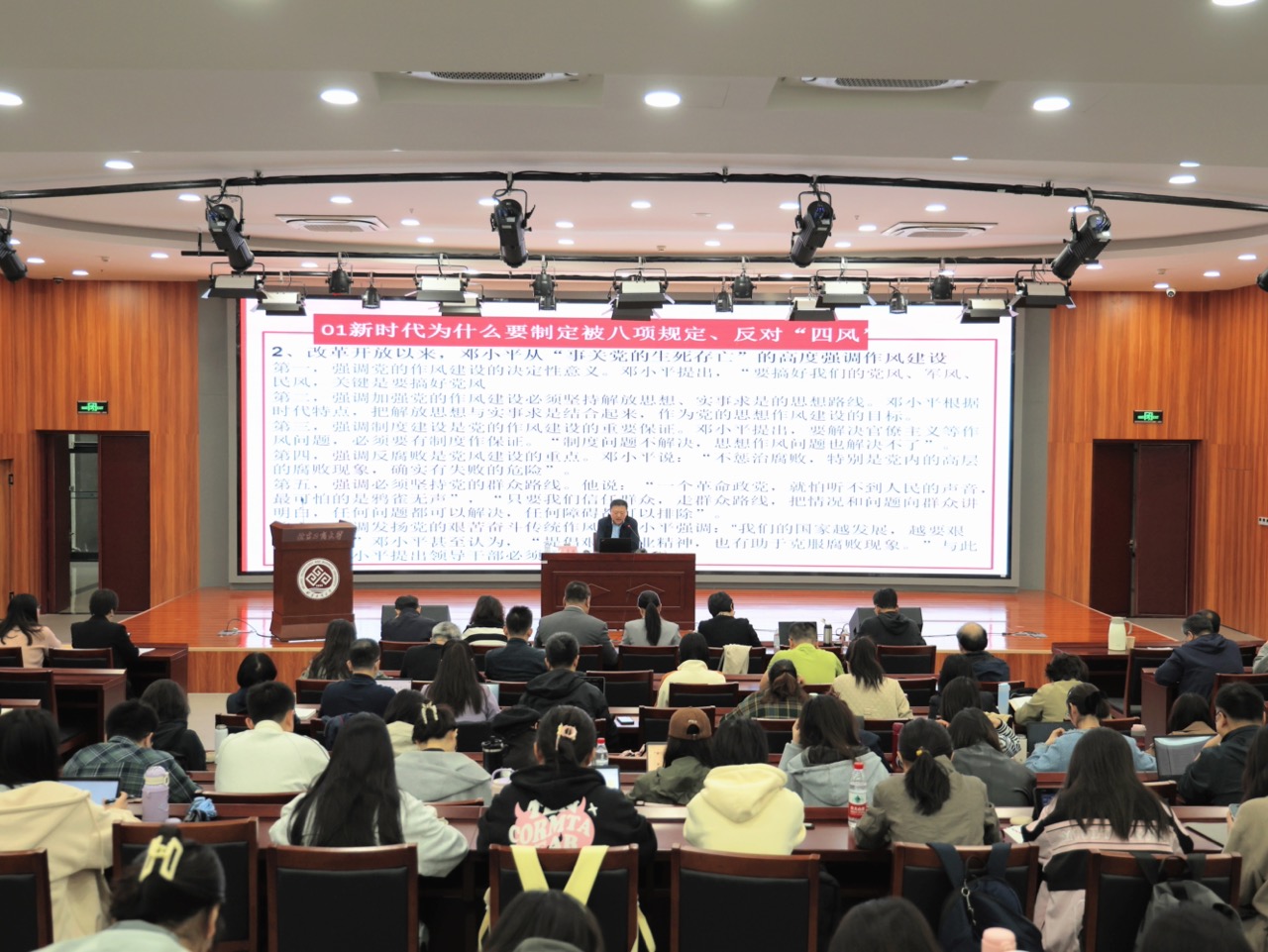 为持续推动全面从严治党向纵深发展,4月18日,日本A片 党委与马克思主义学院党总支联合举办学习教育专题讲座,中国社会科学院马克思主义研究院戴立兴研究员应邀作专题报告,两院领导班子成员及全体师生党员参加学习。