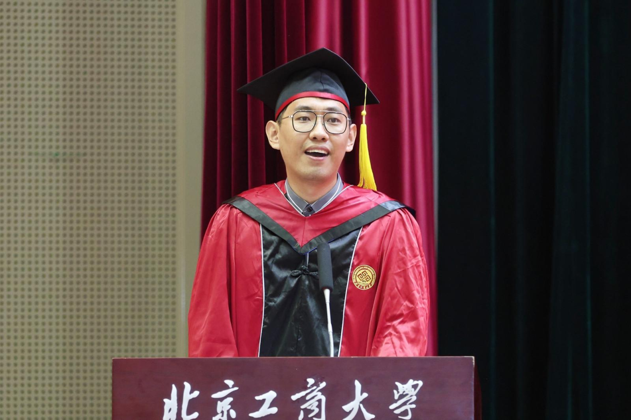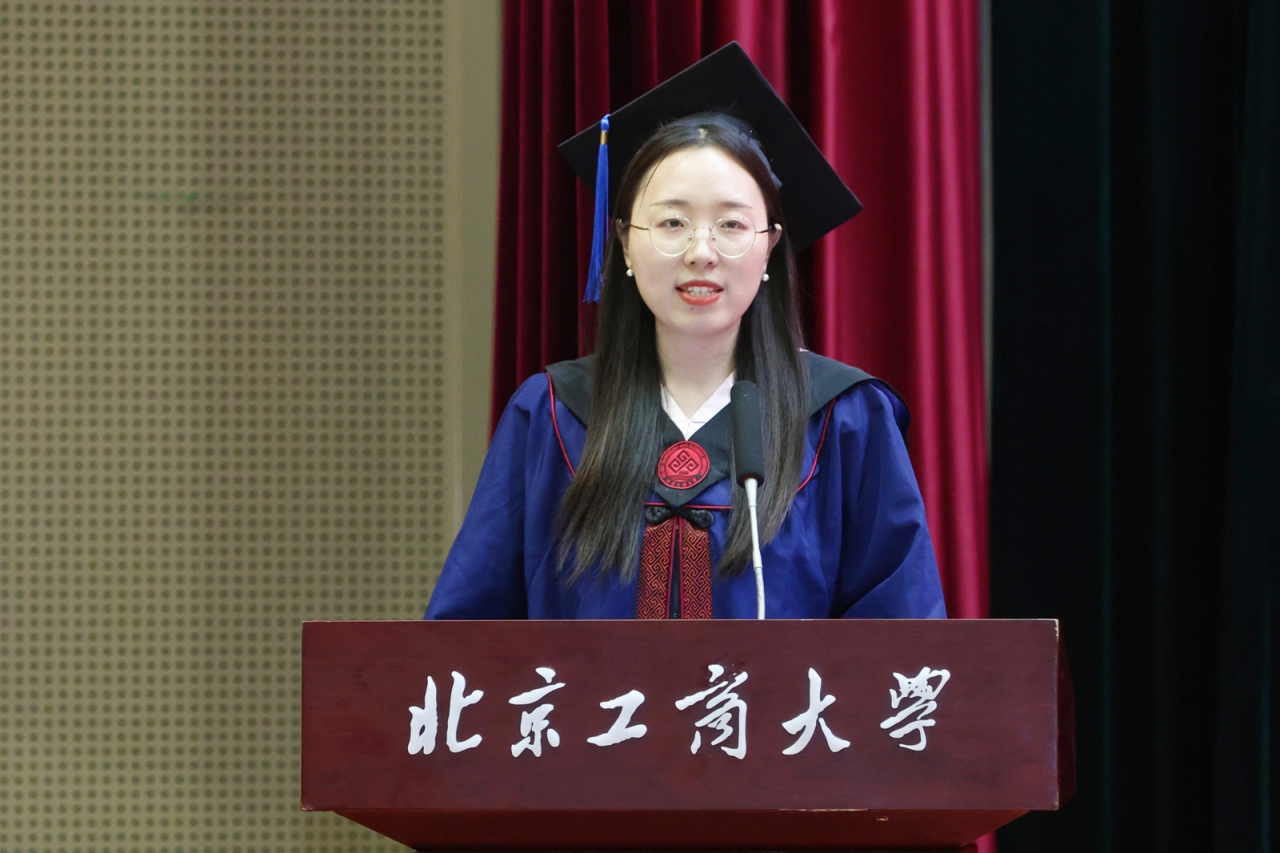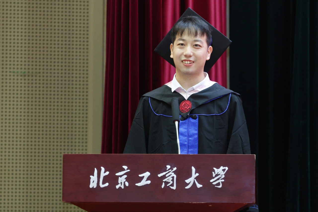 注会202班郝帅代表日本A片 2024届全体本科毕业生向精心培育我们的母校以及辛苦教导我们的老师,表示了最衷心的感谢和最崇高的敬意。他谈到,作为新时代的北工商学子,我们要肩负起新时代的重任,不负时代,不负韶华,成为新时代奋勇前进的搏击者。在以后的生活中,也要带着母校的期望、老师们的教诲、朋友们的鼓励,砥砺前行,做怀揣梦想脚踏实地的人、做拥有智慧富有激情的人、做德才兼备敢挑重担的人,带着“求真 立德 勤奋 创新”的校训精神,以青春之名,赴时代之约。