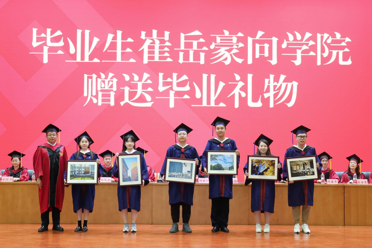 学院党委书记付仕伦代表学院接受礼物并与学生合影留念。