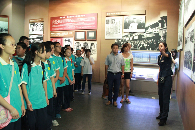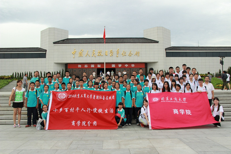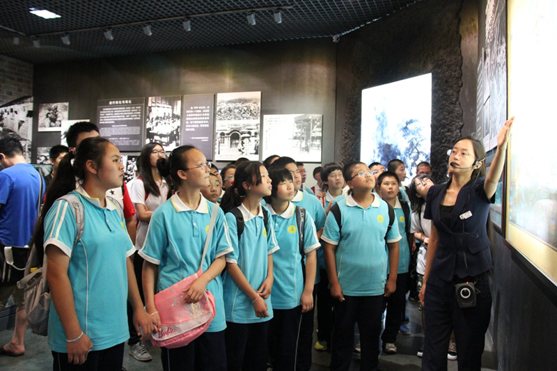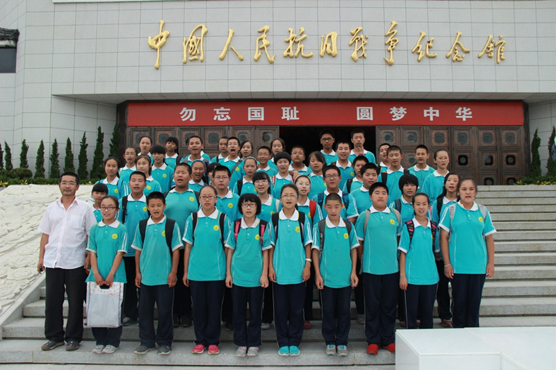 暑期社会实践分团支教老师与长沟中学的师生们在中国人民抗日战争纪念馆开展实践活动,纪念全民族抗战77周年暨抗战胜利69周年。