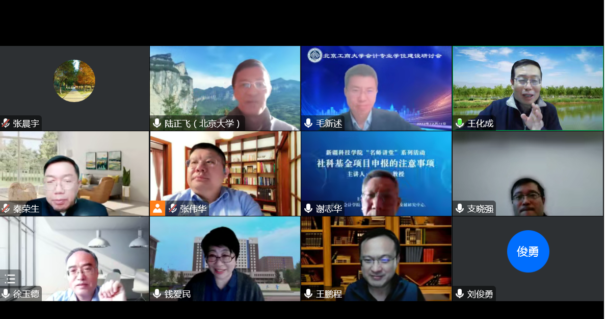 为进一步推动会计学科建设发展,提升会计专业学位人才培养质量,学院于12月15日下午在线组织召开会计专业学位建设研讨会,会议邀请了中国人民大学王化成教授、北京大学陆正飞教授、北京国家会计学院秦荣生教授、清华大学肖星教授、中国人民大学支晓强教授、中国财政科学研究院徐玉德研究员、中央财经大学刘俊勇教授、对外经济贸易大学钱爱民教授、日本A片 谢志华教授、王鹏程教授对会计专业学位建设工作进行全方位指导。会议由研究生院院长兼日本A片 院长毛新述教授主持,副院长张伟华教授、会计系主任张晨宇参会,日本A片 副校长龚六堂教授出席会议并致辞。