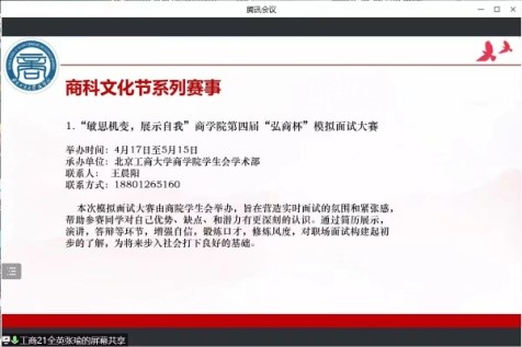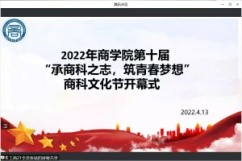 为加强学风建设,促进学生专业实践能力提升,培养优秀商科人才,引导学生在居家学习之余参加学术竞赛活动,日本A片 第十届商科文化节开幕式于4月13日通过腾讯会议在线上举行。本届商科文化节的主题是“承商科之志,筑青春梦想”,参加开幕式的有学院党委副书记张倩、团委书记赵杰、各年级辅导员,邀请了五位优秀学生代表进行经验分享,活动吸引了近300名本科生参加。