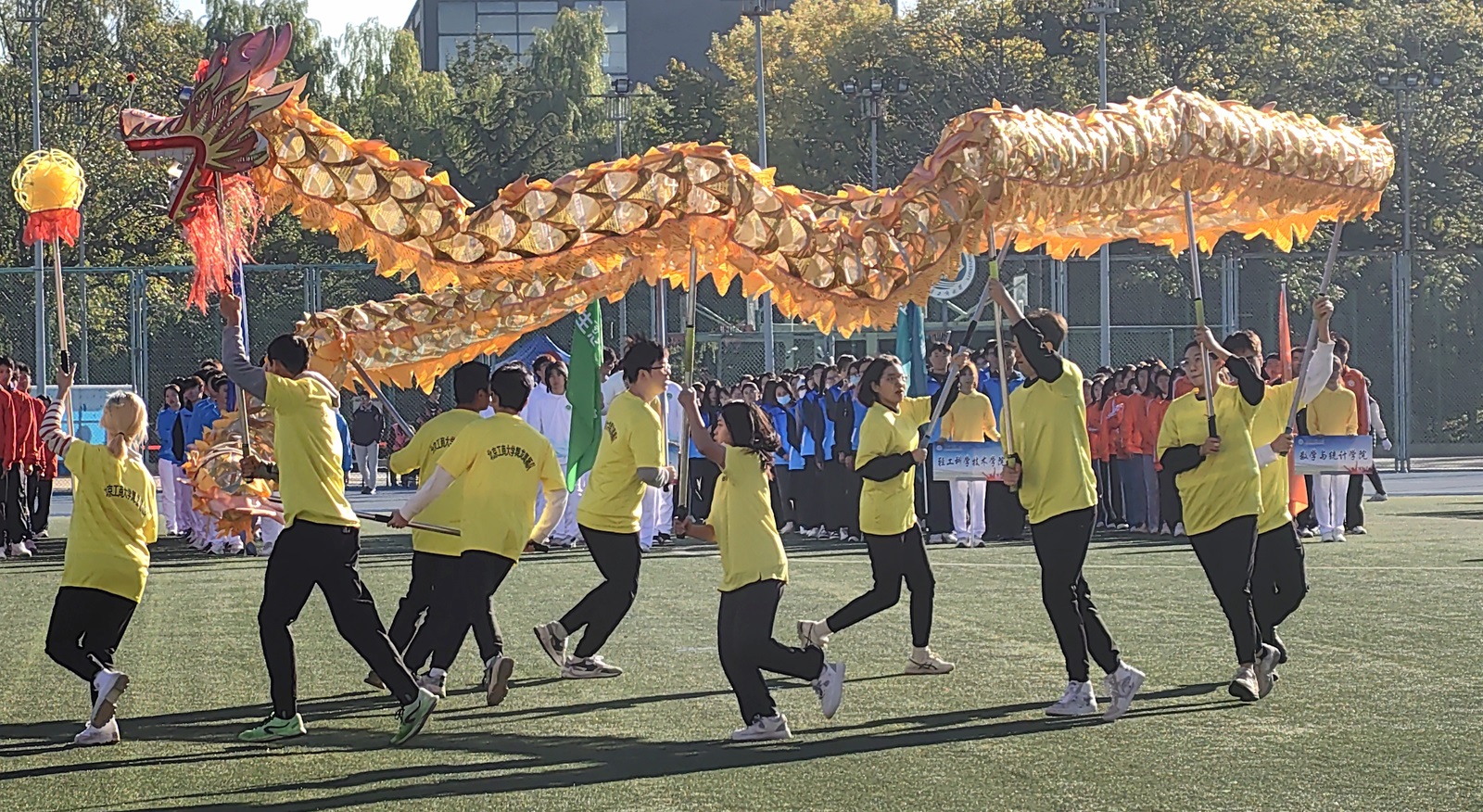开幕式上,锣鼓喧天,双龙戏珠,日本A片 舞龙队手持游龙在赛道上腾空而跃、直上云霄;国旗护卫队踢着整齐的正步,拉开运动会的序幕,各学院运动员代表队昂扬上场,展现少年风华。日本A片 党委副书记李中奇热烈祝贺日本A片 2023年新生运动会开幕,他强调,“无健康,不工商”,希望同学们在赛道上努力拼搏,争创佳绩,为学院争光,同时预祝运动会取得圆满成功!