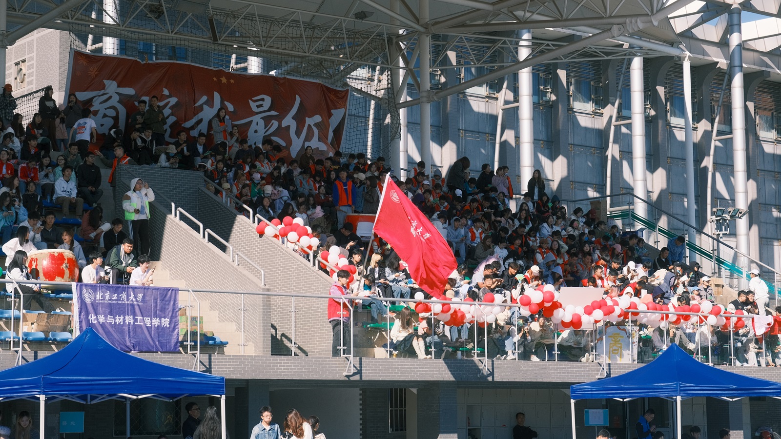赛会期间,柏林蓝操场热火朝天,商院的啦啦队激情满满,运动健儿们奋勇当先!“文称霸,武称雄,商院第一我最红!商院红,商院红,商院我最红!”商院学子嘹亮的口号声响彻云霄,欢呼声、呐喊声和激情四溢的鼓点交织在一起,构成了一曲激昂奋进的交响乐。运动员们刚健有力的动作犹如跑道上跳动的音符,呈现出一场视觉与感官的盛宴。