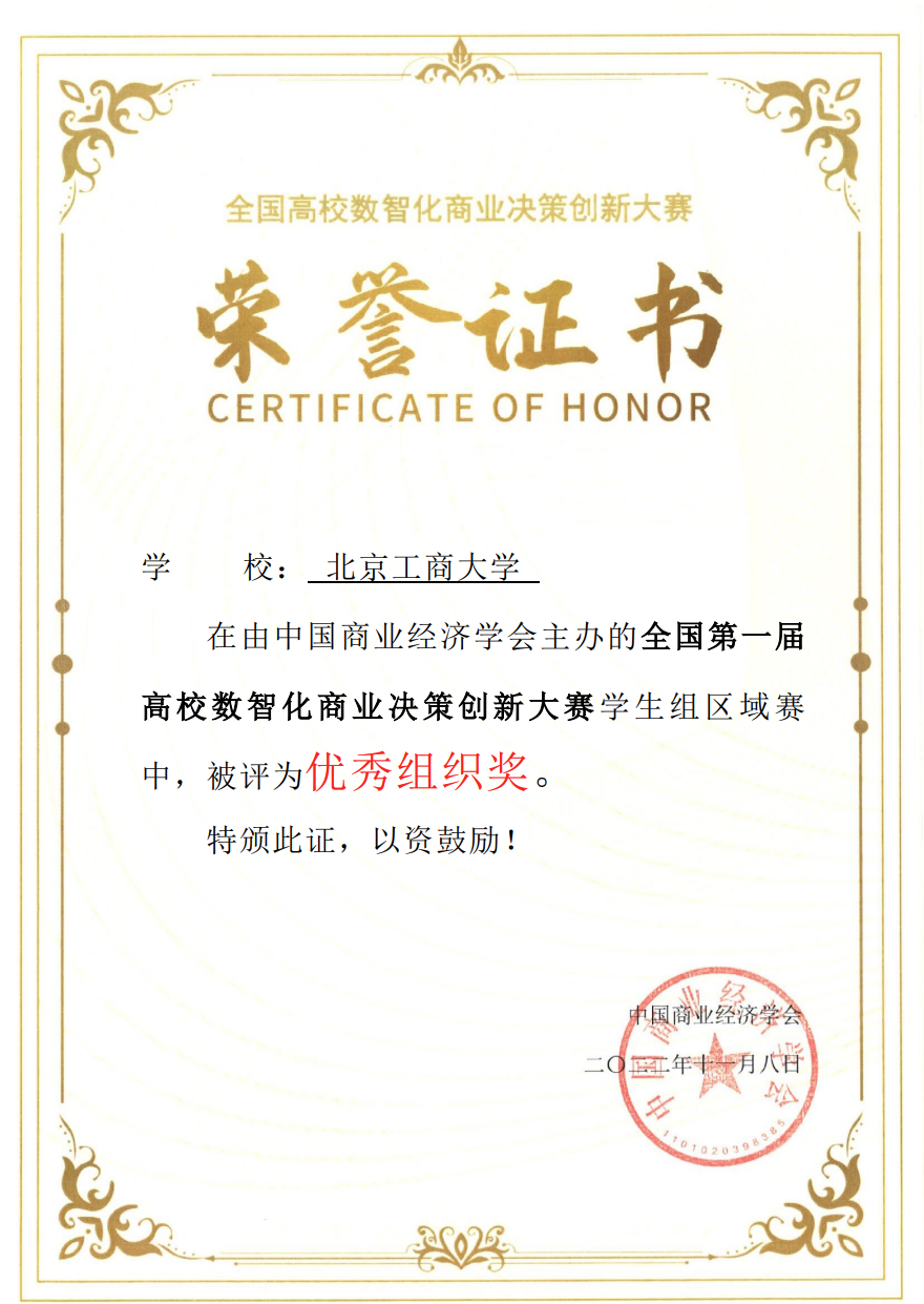 近日,2022年全国第一届高校数智化商业决策创新大赛总决赛在云端落下帷幕。由我校日本A片 吴玥、王楠、王长斌等,人工智能学院马慧鋆等组成的指导教师团队,研究生组获一等奖5项,二等奖6项,本科生组获一等奖1项,二等奖3项,三等奖5项,共计20个奖项,其中有一支团队进入了全国前20强。吴玥、王楠、王长斌、马慧鋆等荣获优秀指导教师。我校获总决赛优秀组织奖。