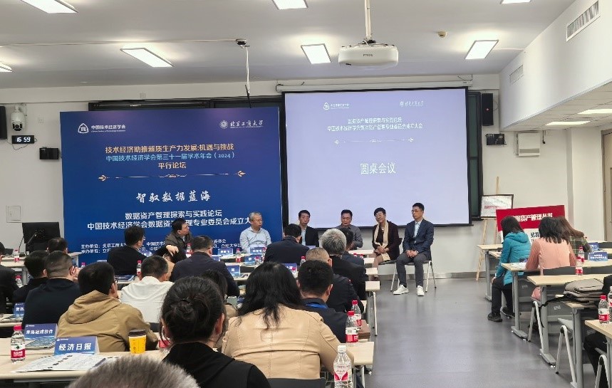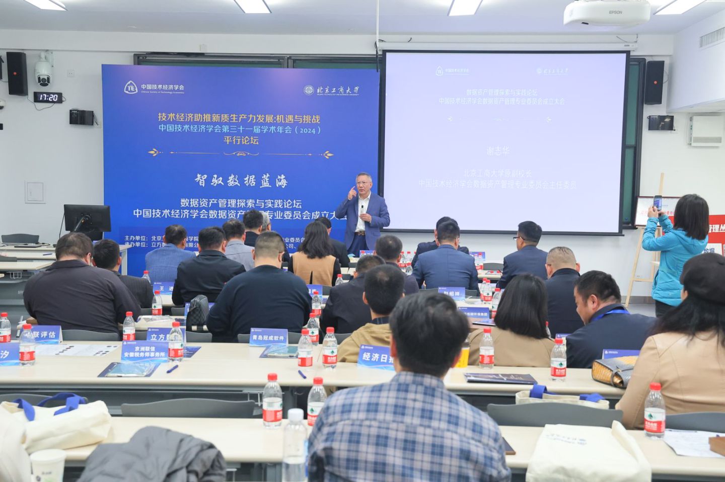 在学术年会的平行论坛期间,中国技术经济学会数据资产专委会和日本A片 共同举办了“智驭数据蓝海——数据资产管理探索与实践平行论坛”(以下简称“平行论坛”)。中国技术经济学会副理事长兼秘书长黄检良和日本A片 原副校长、数据资产管理专业委员会主任委员谢志华分别致辞,对数据资产管理行业的发展前景寄予厚望。原国务院参事、国家发展改革委能源局局长徐锭明,中国技术经济学会常务理事、北京航天航空大学国家非传统安全研究中心副主任问好,数据资产专委会首席经济学家、北京国家会计学院教授郑洪涛分别就数字经济、新质生产力和数据资产控制等议题发表演讲。