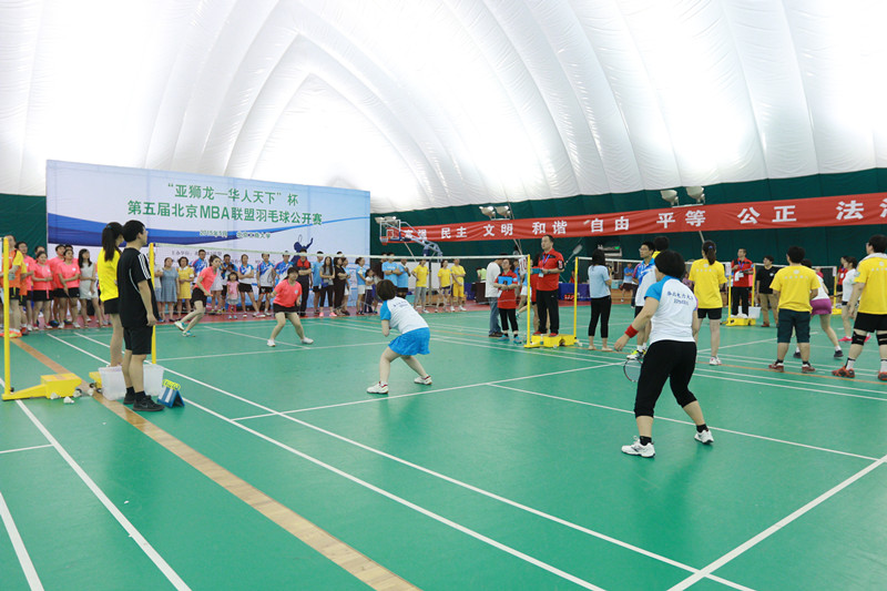 MBA联合会承办的“亚狮龙-华人天下”杯第五届北京MBA联盟羽毛球公开赛在中央电视塔健身中心如期开赛。包括北京大学、清华大学、中国人民大学、北京师范大学在内的22所具有MBA教育办学资格的北京地区高校参与本次赛事。该赛事作为北京MBA联盟的传统活动,至今已成功举办了四届。作为北京三十余所高校MBA学生相互学习合作共进的重要平台之一极具号召力和影响力。通过我校MBA教育中心和MBA联合会的积极申办,成功获得本次比赛的承办权,这是我校自2007年获得MBA办学资格以来首次举办如此大规模的校际间活动。