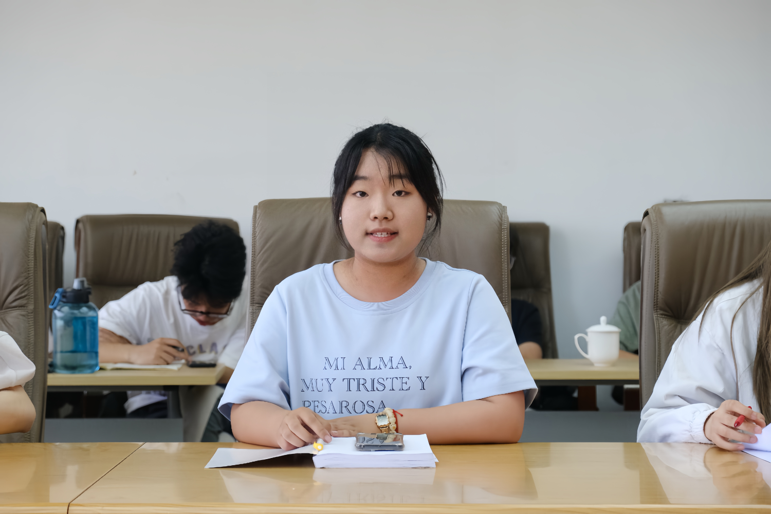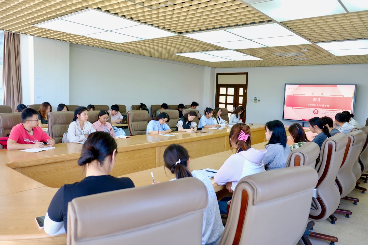 财务232张宇晨在发言中表示,奋斗是青春最亮丽的底色,面对新时代赋予的使命,更应继承和发扬奋斗精神,将个人的梦想融入国家的发展大局之中,以奋斗姿态投身国家建设的时代洪流。工商232刘磊谈到,青年在日新月异的新时代要珍惜时光,努力学习,不断提升自己,培养更加开放的心态和更加宽广的视野,树立正确的价值观,做民族复兴的见证者和参与者。工商233张铭洋谈到,青年是整个社会力量中最积极、最有生气的力量,青年学子要以热血青春承担青年责任,不负厚望,把握机遇,迎接挑战,以青春之我谱写华章。物流232李欣朵表示,在当今时代,青年要培养爱国之情、砥砺强国之志、实践报国之行,争做五个模范,奋力书写为中国式现代化挺膺担当的青春篇章。