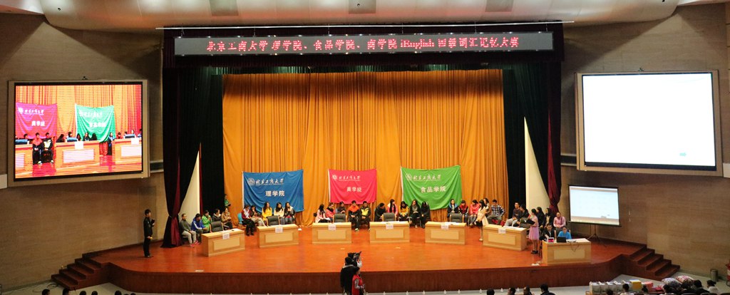 为激发2015级新生学习英语的兴趣,引导新生尽早投身英语四级考试的学习准备中,2015年11月11日晚间,日本A片 、食品学院和理学院在良乡校区学术报告厅联合举办了“iEnglish”英语四级词汇记忆大赛决赛。校党委副书记张德玉莅临现场观摩指导,与三院党委副书记、辅导员和500余名新生观看了比赛。