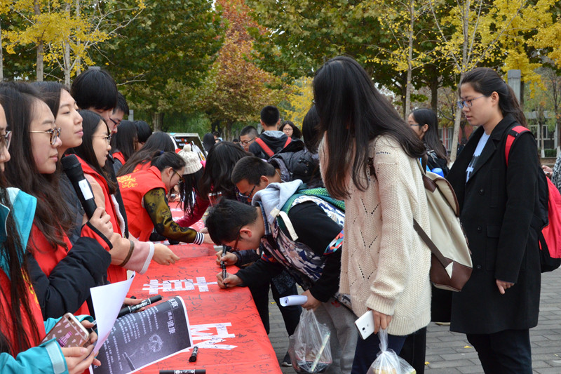党委副书记樊江涛、辅导员们以及近千名师生参加签名活动。