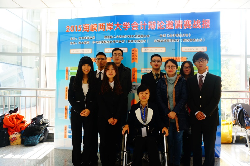 11月18-20日,2015海峡两岸大学会计辩论邀请赛在中国海洋大学举行。本次邀请赛是由中国海洋大学、财团法人台湾会计研究发展基金会和台湾《会计研究月刊》共同主办、海峡两岸学子共同参与的会计领域专业辩论赛。为期三天的比赛中,包括我校在内,来自大陆与台湾的18所高校的辩论队展开了激烈的角逐。在领队刘婷老师和教练刘恋老师的精心指导下,我校辩论队取得了“优胜奖”的好成绩,辩手黄雅茹、胡嘉力、张笑凡、辛地、侯皓宸、王通晓分获个人优胜奖。