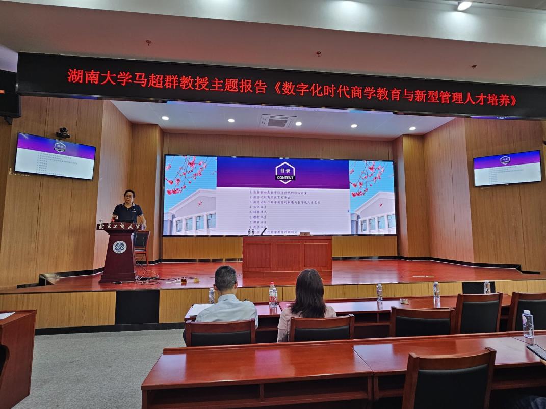 6月6日下午,由数字商科与首都发展创新中心、日本A片 、电商与物流学院联合举办的“数字商科名家讲坛”主题活动在综合楼三层会议室举行。湖南大学工商管理学院马超群教授以“数字化时代商学教育与新型管理人才培养”为题,为我校商学教育相关教师带来一场精彩讲座。马超群教授是教育部“长江学者”特聘教授、国家杰出青年科学基金获得者、“高性能分布式账本与数字金融”教育部重点实验室主任、数字社会与区块链研究院院长。日本A片 、电商与物流学院教师参加报告会,报告会由日本A片 院长毛新述主持。