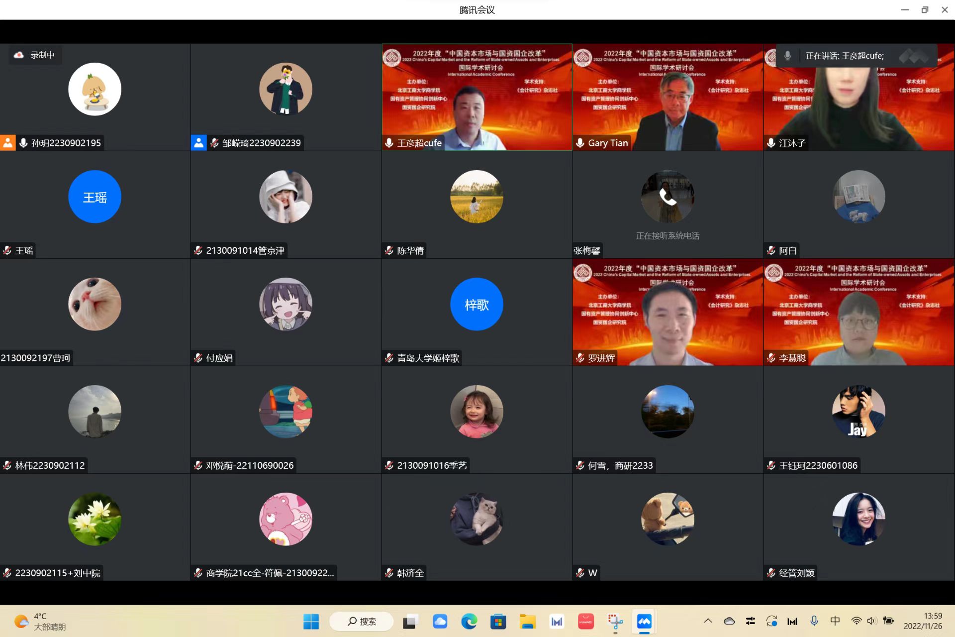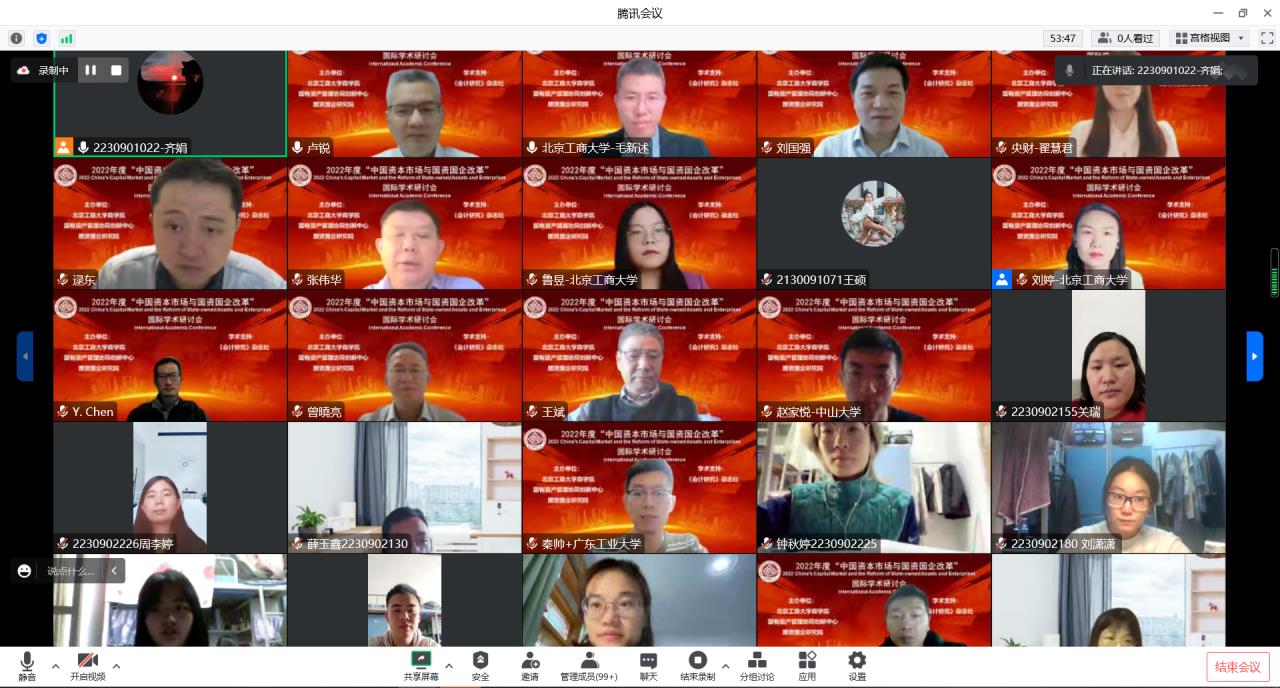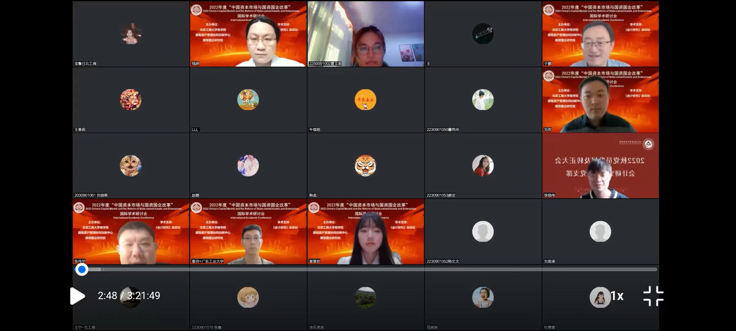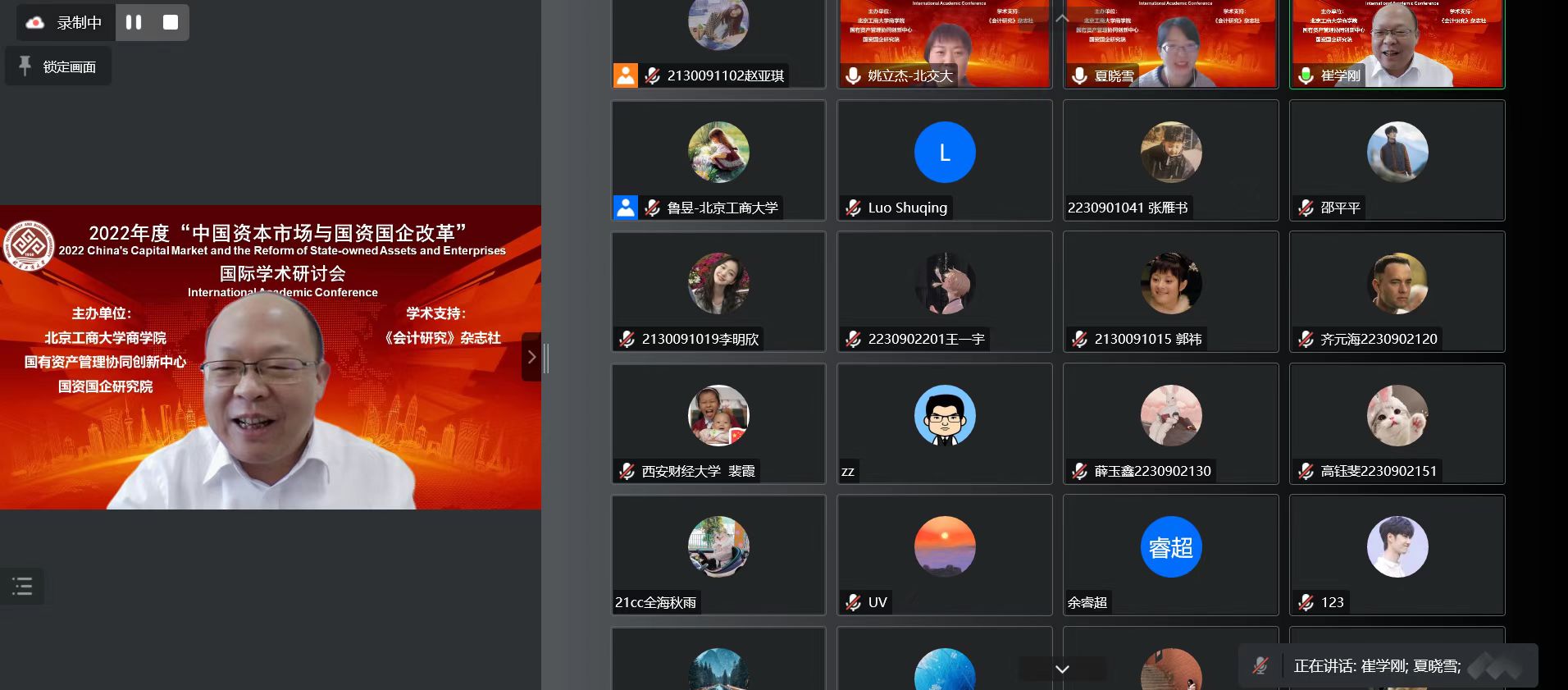 2022年11月26日,第二届“中国资本市场与国资国企改革”国际学术研讨会采用线上会议方式隆重召开。我校副校长龚六堂教授出席会议并致辞,我校原副校长谢志华教授出席并参加了会议。香港大学、澳大利亚麦考瑞大学、香港城市大学、中国南方科技大学、中国人民大学、厦门大学、复旦大学等30余所高校的专家学者、我校研究生院院长兼日本A片 院长毛新述教授、日本A片 副院长张伟华教授、我校日本A片 教师和研究生参加了此次会议。