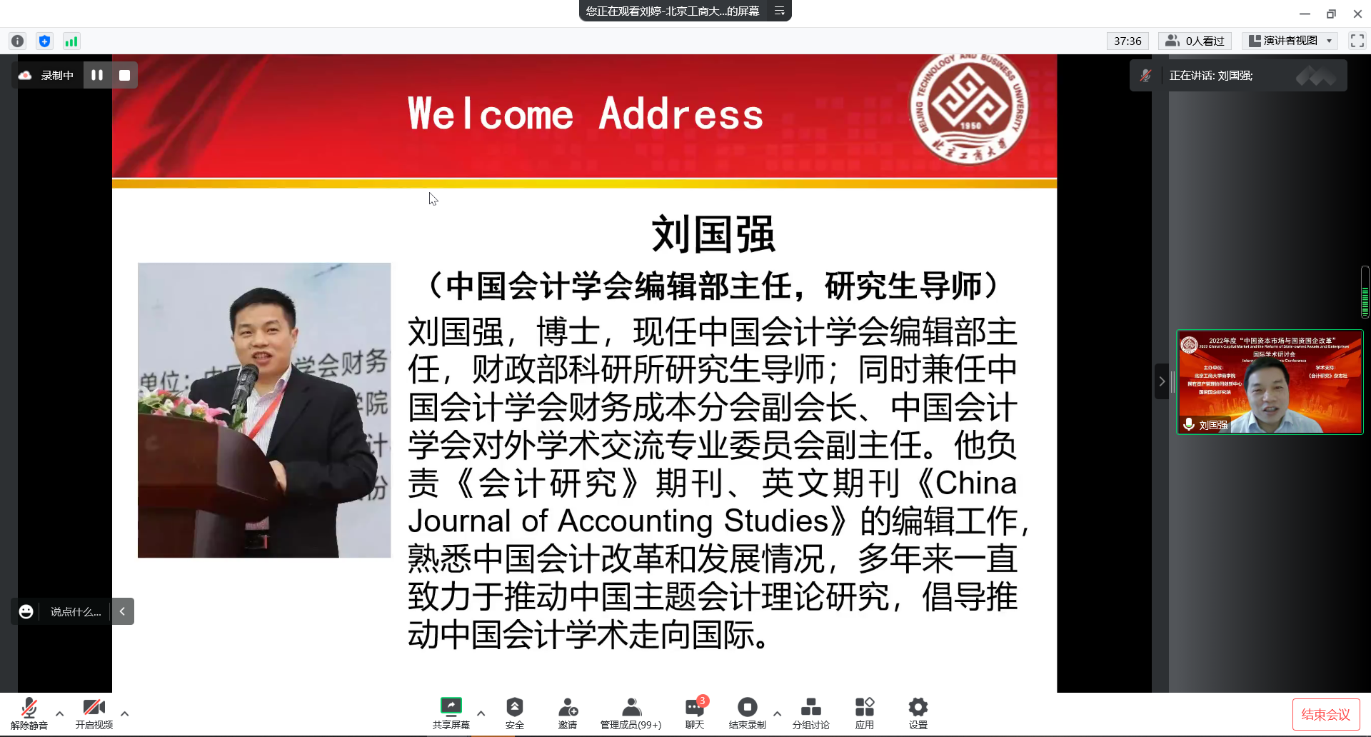 在开幕式上,龚六堂副校长和中国会计学会刘国强主任分别致辞。龚六堂副校长对与会专家、教师和学生表示热烈欢迎,他指出,在中国实现高质量发展中,要始终坚持两个不动摇,更好发挥资本市场和国有企业在经济发展中的重要作用。刘国强主任对会议的召开表示热烈祝贺!他表示,中国会计学会将一如既往地大力支持日本A片 会计学科的发展,《会计研究》将在推动原创思想发表,会计在经济社会发展中作用,会计与业务、技术的深度融合等方面的研究上发挥更好的引领作用。