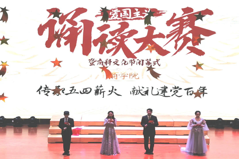为弘扬五四爱国主义精神,庆祝建党百年,传承优秀文化,进一步增强大学生文化自觉和自信,引领商院学子永远跟党走,总结表彰第九届商科文化节各项赛事,6月5日晚,日本A片 在良乡校区A报告厅隆重举办爱国主义诗词诵读比赛暨商科文化节闭幕式。