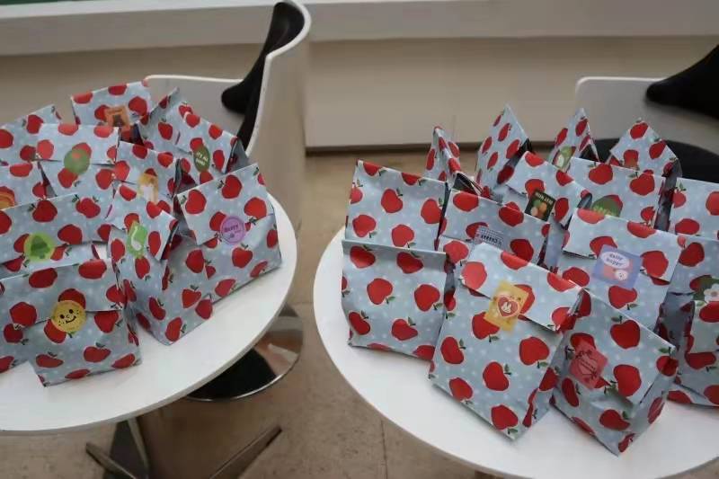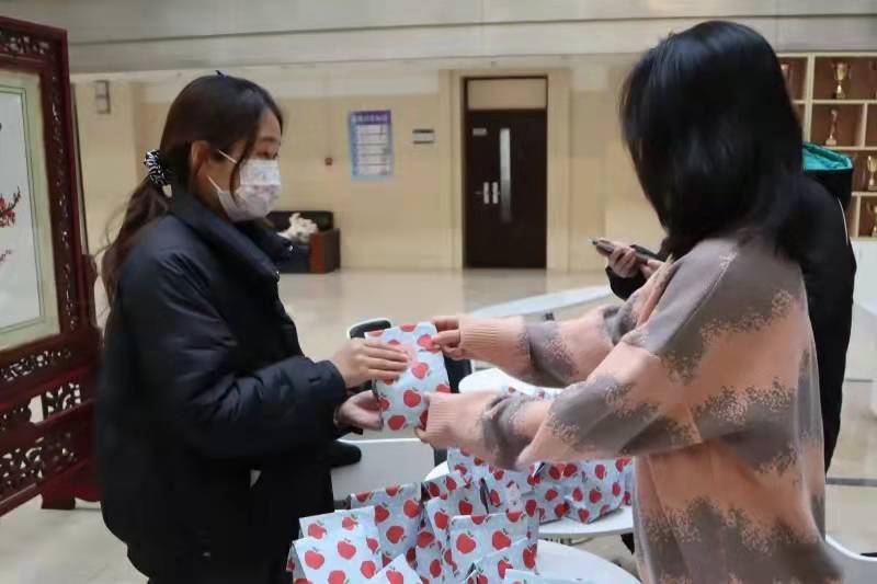 在考研学子们仍在抓紧最后的时光紧张复习之际,日本A片 心资部的同学们早早来到商楼大厅为家庭经济困难的考研学子们精心准备小礼袋。画满红苹果的蓝白相间小礼袋里装着又大又红的苹果和一张满载着祝福语的卡片。苹果有着放“苹”心态、“苹”稳上岸、一定能“果”线的寓意,寄托着学弟学妹们对考研学子的祝福;卡片上写有大家精心准备的鼓励话语,言语间希望这些考研的学长学姐们能摘取胜利的桂冠,不负过去伏案桌前、泛舟书海的自己。