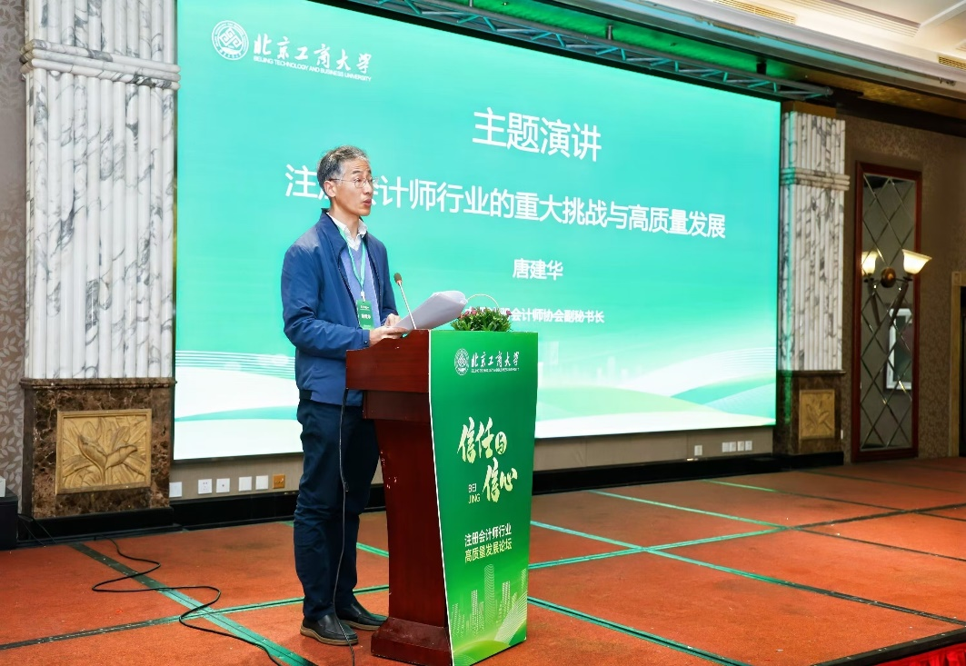 中国注册会计师协会副秘书长唐建华发表了题为“把握机遇、直面挑战、积极作为,推进注册会计师行业高质量发展”的主题演讲。他首先分析了当前行业的形势与任务,强调在全面深化改革的背景下,要积极把握新机遇,肩负新使命。他接着剖析了行业面临的挑战及应对策略,提出要以职业化建设为核心,以“五化”为目标,引领行业实现高质量发展。最后,他指出要提振信心、增进信任,坚定不移地推动行业迈向高质量发展。