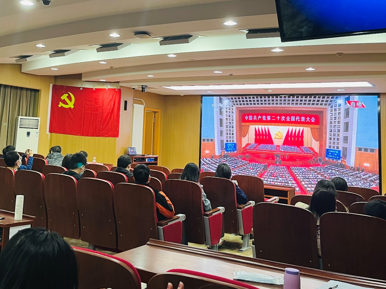 党的二十大于2022年10月16日上午十点正式开幕。为喜庆党的二十大胜利召开,日本A片 全体研究生党员、学生骨干相聚教室、相约云端,采用线上线下相结合的方式集中收看党的二十大开幕式盛况,认真聆听、学习、热议习近平总书记的报告。