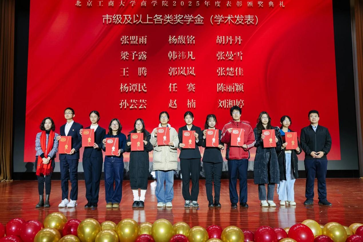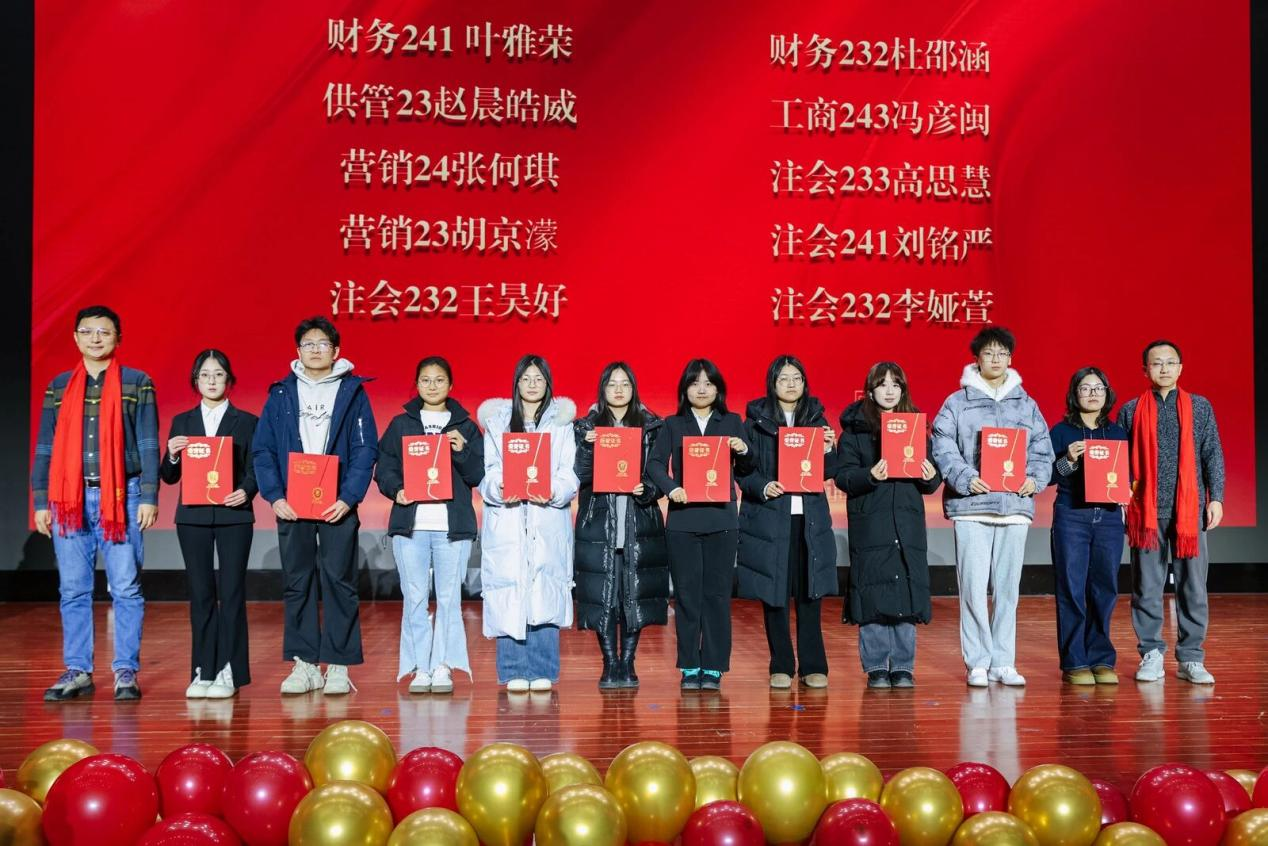 结合党的二十届四中全会要求,樊江涛对同学们提出三点希望:一是筑牢信仰之基,做胸怀“国之大者”的时代新人。以党的创新理论武装头脑,将个人理想融入民族复兴伟业,成长为堪当大任的社会主义建设者和接班人;二是传承红色血脉,做矢志拼搏的商院青年。从“必晟虎”精神、“行走的商院红”实践中汲取力量,将爱国情、强国志、报国行融入学习科研与社会实践;三是强化责任担当,做优良学风践行者。学生骨干带头营造“比学赶帮超”氛围,获奖集体和个人发挥榜样作用带动全院进步。希望全体师生以此次表彰为新起点,新一年凝心聚力,奋勇争先,再创佳绩!