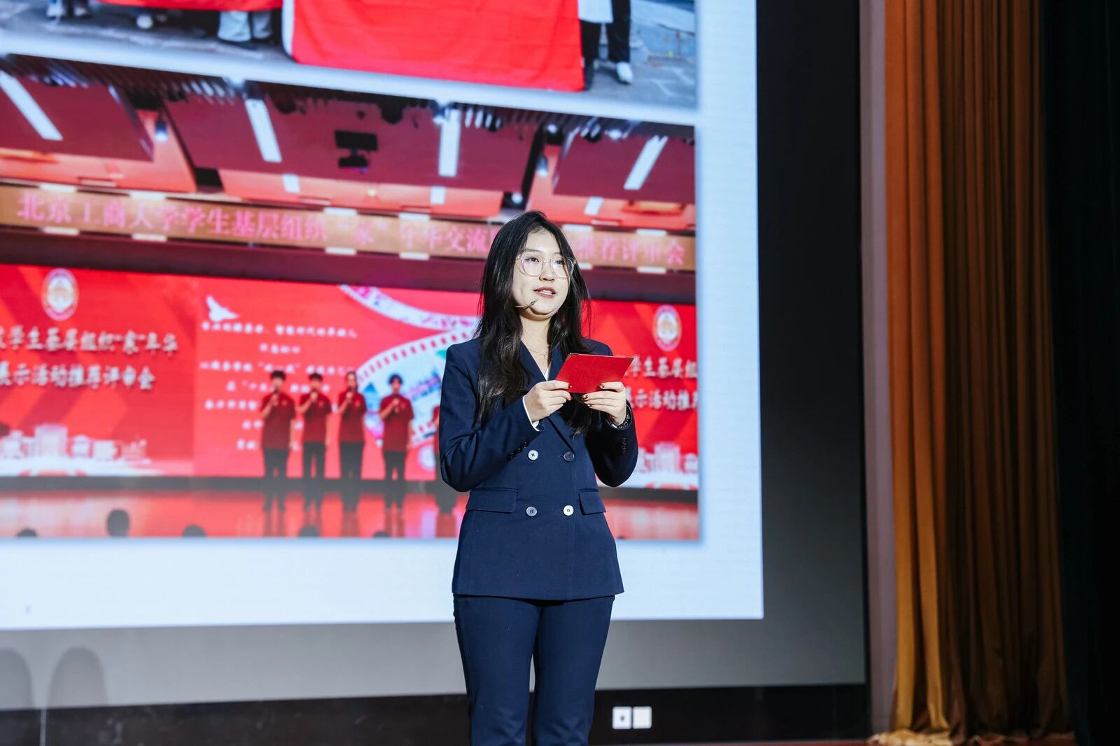 学院党委副书记张悦、院长助理徐正达为市级及以上各类奖学金、北京高校学生基层组织“家”年华优秀推荐代表颁发荣誉。